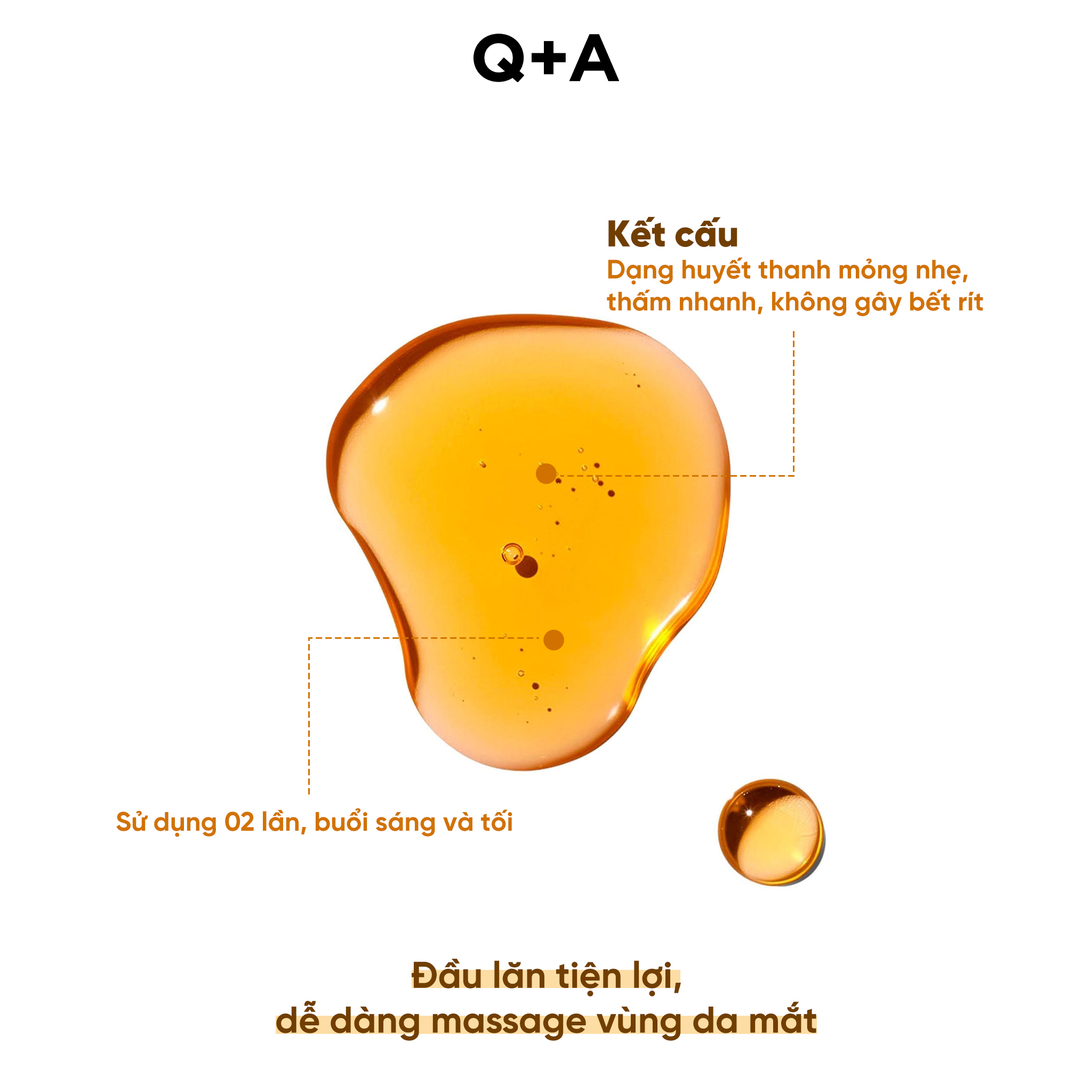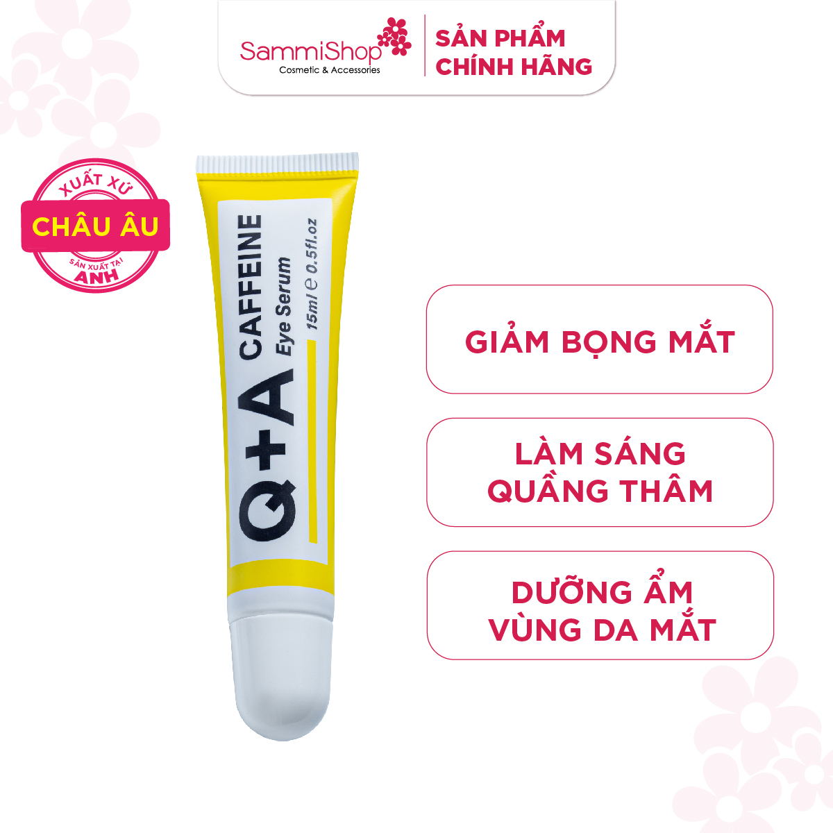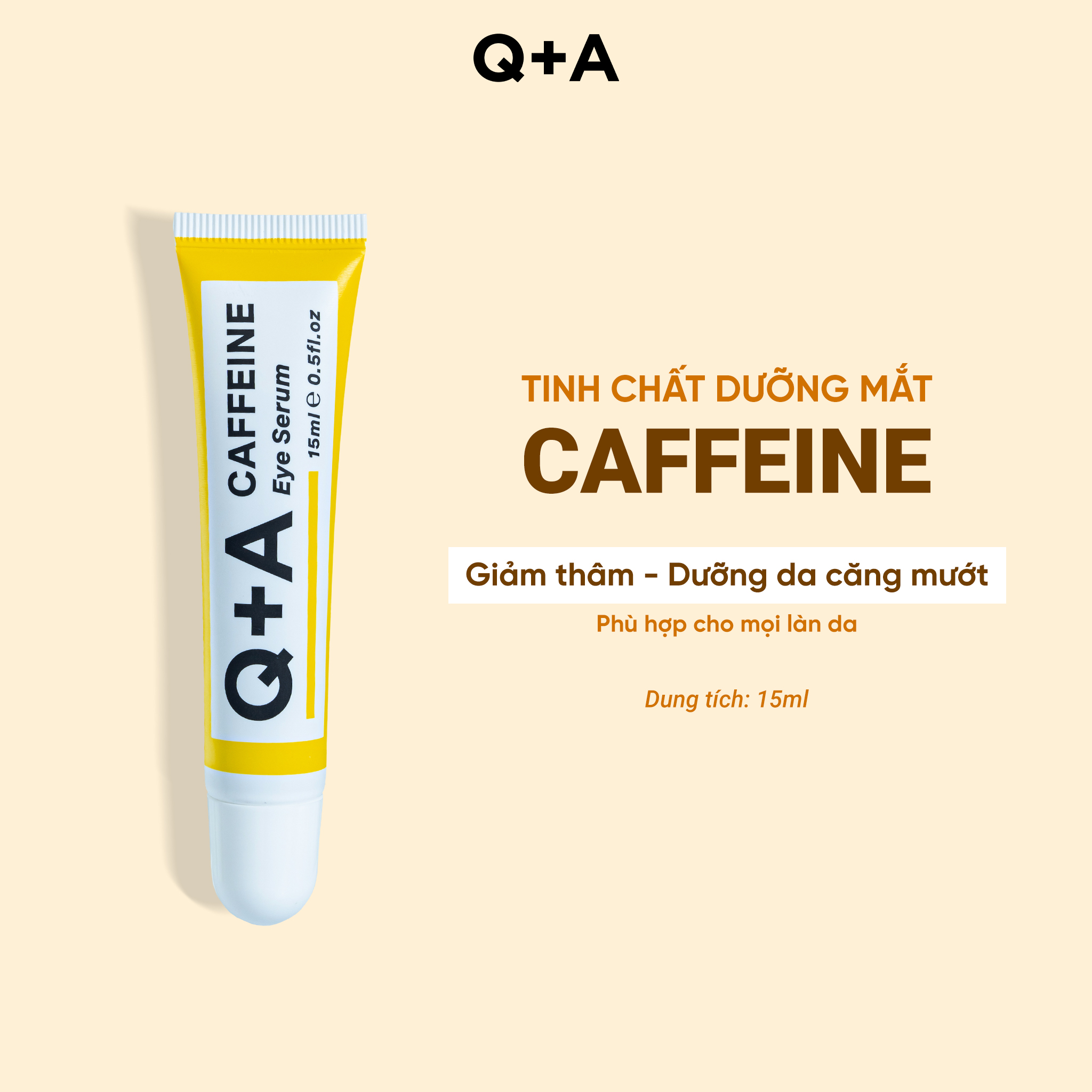 Q+A Tinh chất Caffeine Eye Serum 15ml giúp làm giảm sự xuất hiện của lão hóa quanh mắt, bằng cách làm săn chắc làn da mỏng manh và làm sáng quầng thâm.