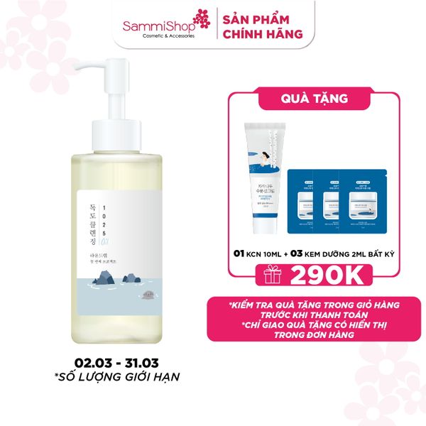 Round Lab Dầu tẩy trang 1025 Dokdo Cleansing Oil giúp loại bỏ lớp trang điểm, dầu thừa và tạp chất trên da. Đồng thời sản phẩm giúp ung cấp độ ẩm, hỗ trợ cải thiện độ đàn hồi và làm dịu da. Mang lại làn da mềm mại, mịn màng.