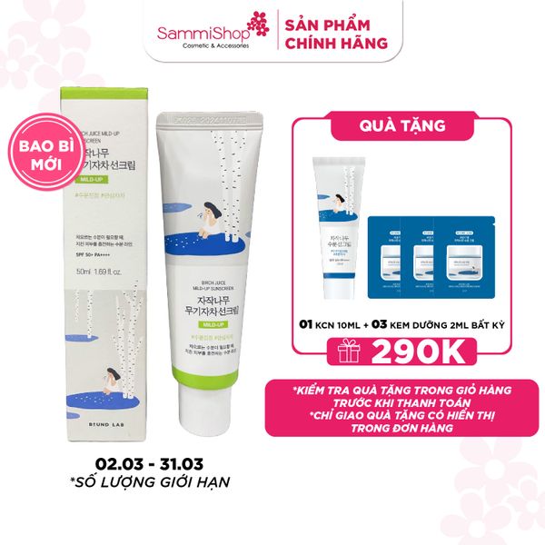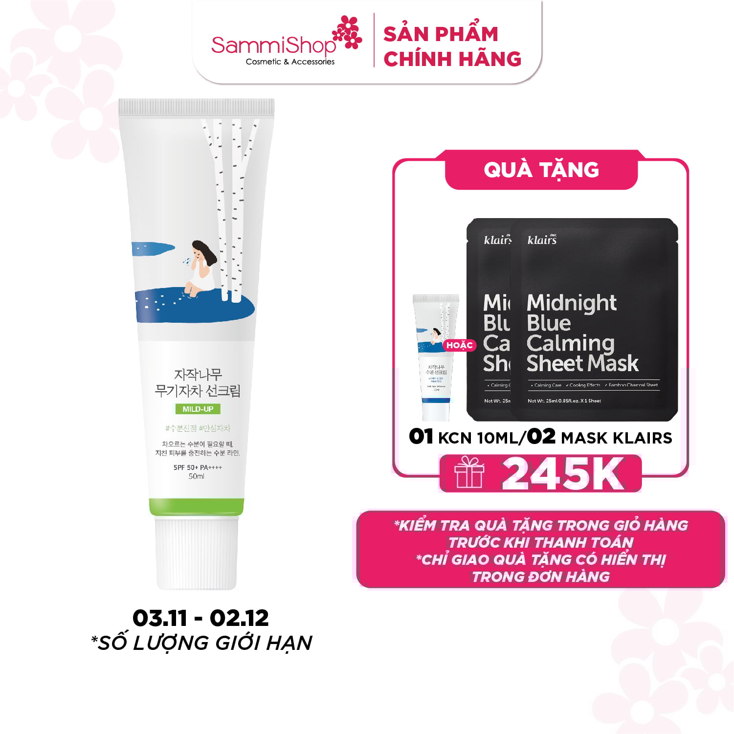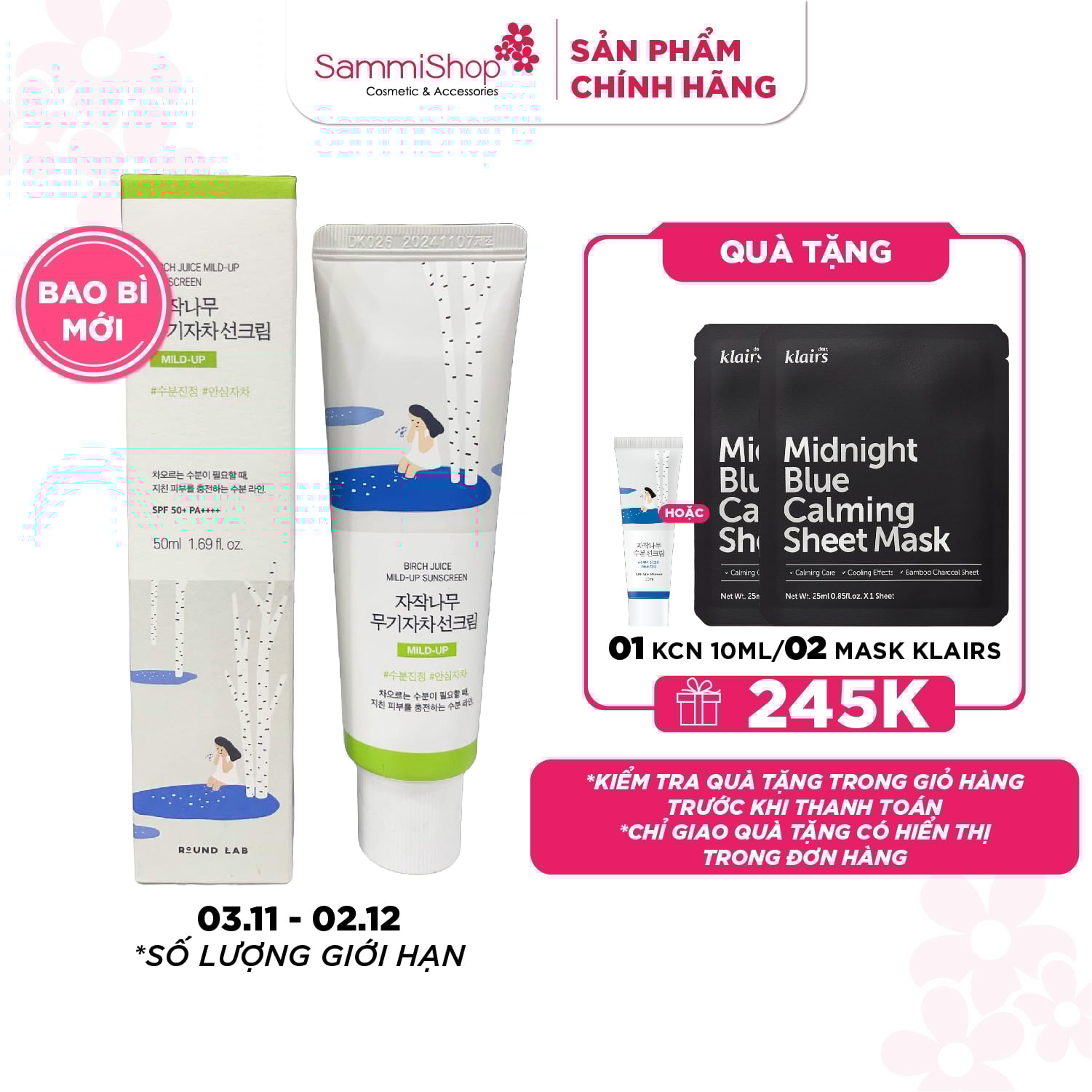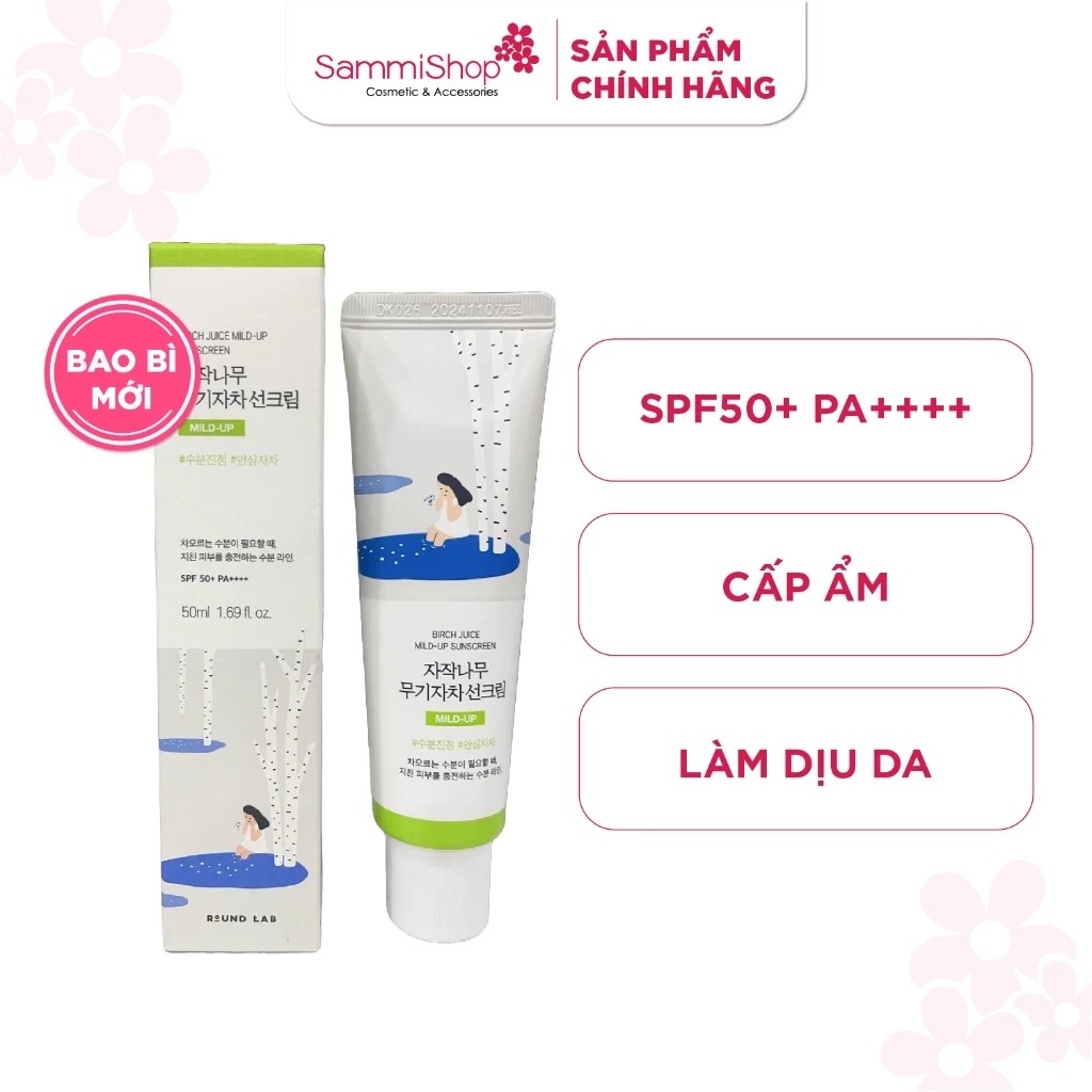 Kem chống nắng Round Lab Birch Juice Mild-up Sunscreen giúp bảo vệ da trước tác hại của tia UV. Đồng thời bổ sung độ ẩm, làm dịu da và giúp da sáng mịn.