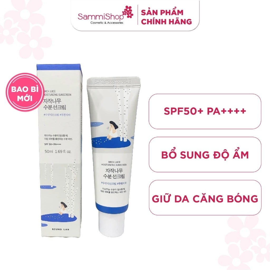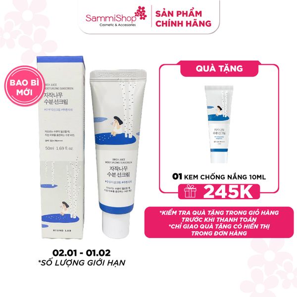 Kem chống nắng Round Lab Birch Juice Moisturizing Sunscreen giúp bảo vệ da trước tác hại của tia UV. Đồng thời giúp bổ sung độ ẩm, phục hồi và làm dịu da. Mang lại làn da tươi sáng và mịn màng.