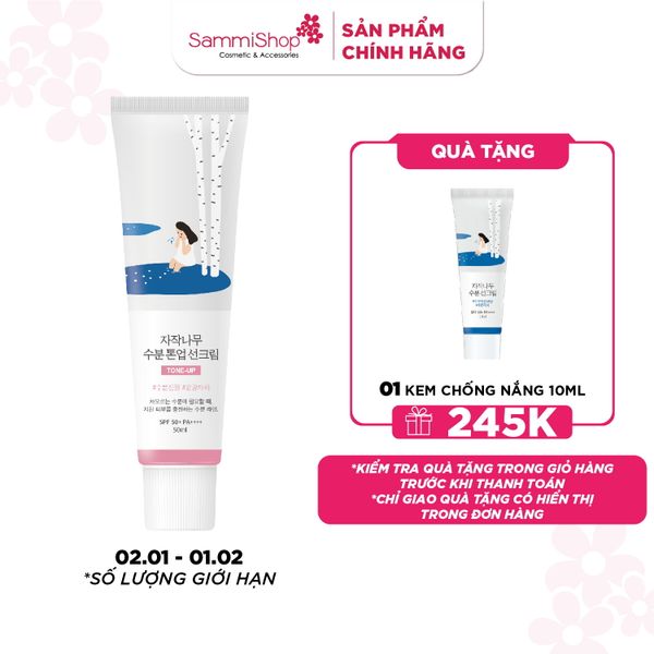 Kem chống nắng Round Lab Birch Juice Moisturizing Tone-up Sunscreen giúp bảo vệ da trước tác hại của tia UV và hỗ trợ nâng tone da. Đồng thời bổ sung độ ẩm, phục hồi và làm dịu da. Sản phẩm giúp cải thiện độ đàn hồi của da. Mang lại làn da tươi sáng và mịn màng.