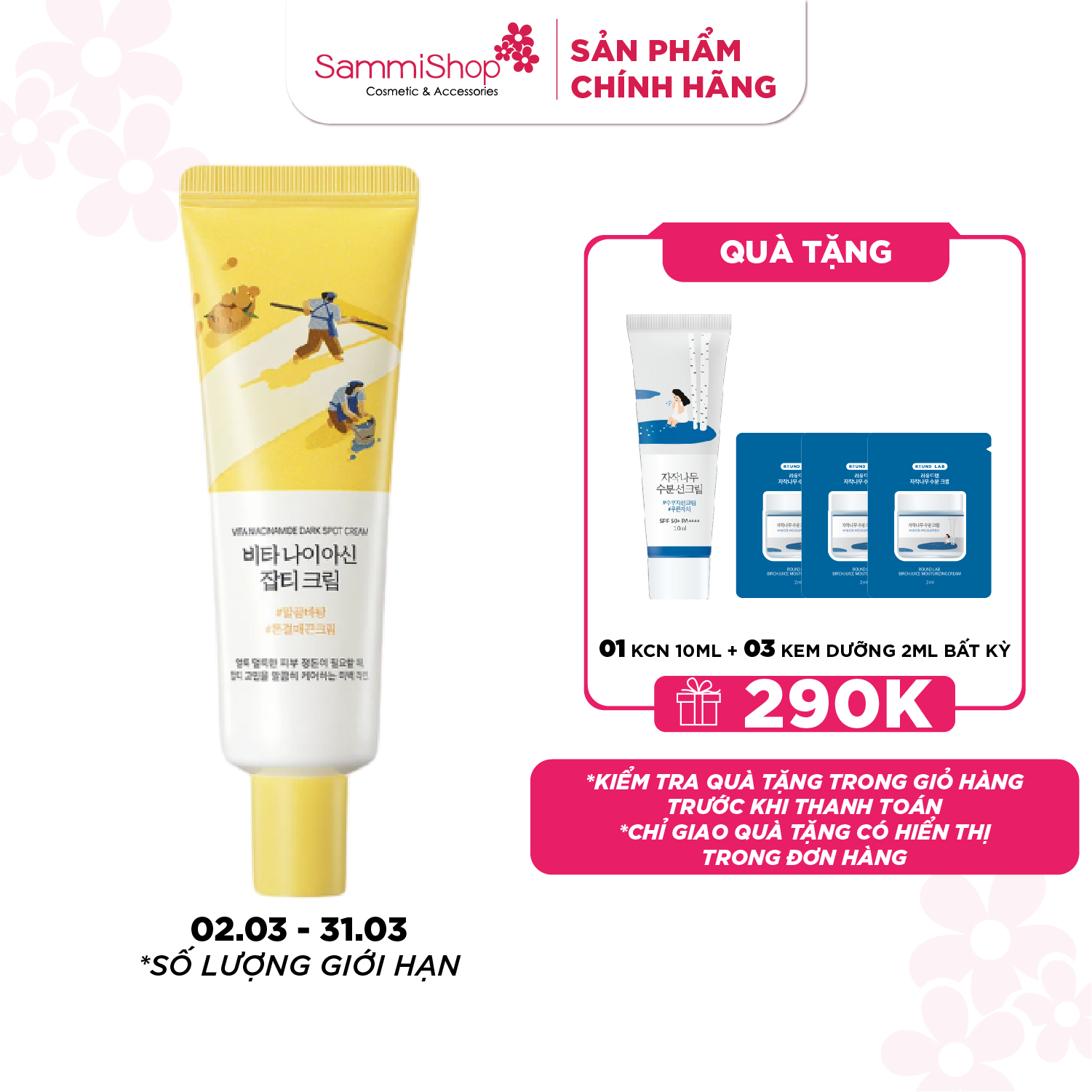 Round lab Kem dưỡng Vita Niacinamide Dark Spot Cream 50ml giúp cải thiện vết thâm, làm đều màu da và hỗ trợ dưỡng sáng toàn diện. Kem có khả năng loại bỏ tế bào chết dịu nhẹ, bổ sung độ ẩm và làm dịu da. Sản phẩm giúp cải thiện tông da tổng thể, mang lại làn da tươi sáng, mịn màng.