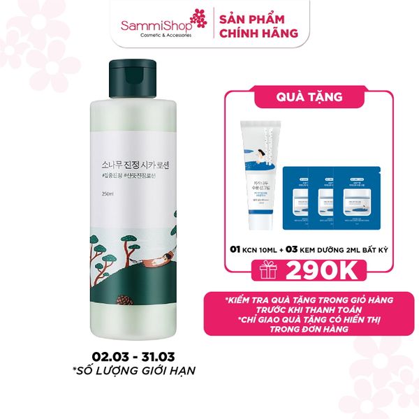 Round lab Sữa dưỡng Pine Calming Cica Lotion 250ml kết cấu mỏng nhẹ, giúp bổ sung độ ẩm và làm dịu da nhạy cảm. Sản phẩm còn hỗ trợ loại bỏ tế bào chết và tạp chất trên da, giúp da thông thoáng. Lotion thẩm thấu nhanh, không bết dính, mang lại làn da ẩm mượt, mịn màng suốt cả ngày.