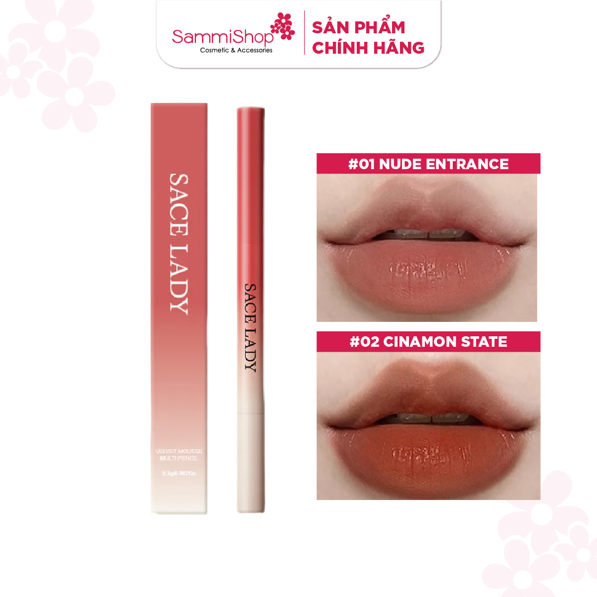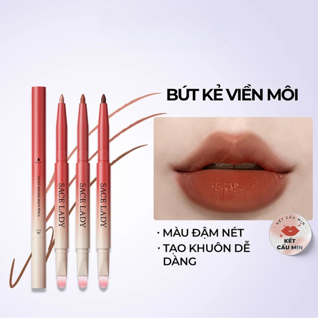 Sace Lady Chì kẻ viền môi Velvet Mousse Multi Pencil 0.2g có sắc tố phong phú này có thiết kế cơ học dễ dàng vặn lên bằng cọ, dùng cọ để đeo một mình hoặc thoa son môi giàu màu để hoàn thiện vẻ ngoài.