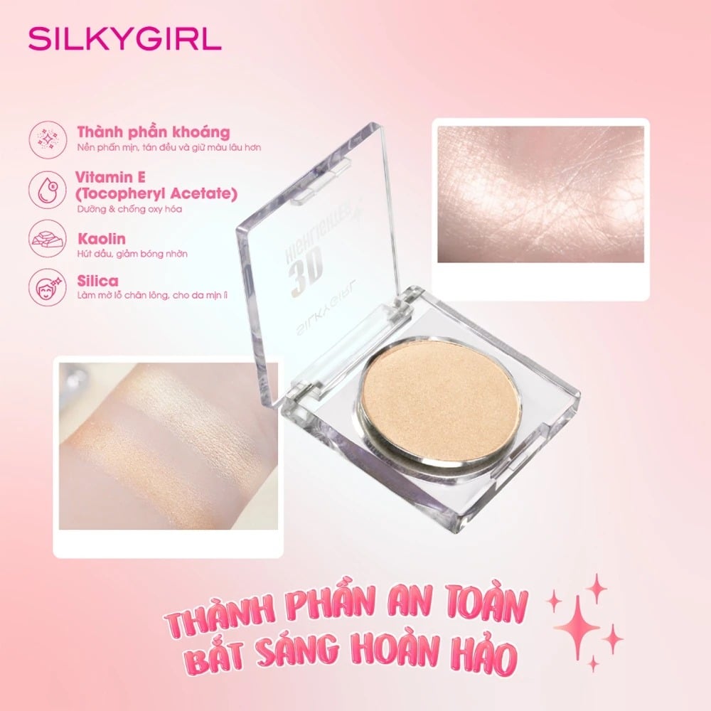 Silkygirl Phấn bắt sáng 3D Highlighter 3.5g là sản phẩm Phấn bắt sáng đến từ thương hiệu Silkygirl của Malaysia mang đến hiệu ứng bắt sáng lung linh, giúp gương mặt rạng rỡ và cuốn hút hơn. Với kết cấu bột mịn nhẹ cùng sắc màu thời thượng, sản phẩm dễ dàng tôn lên đường nét tự nhiên và phù hợp với nhiều phong cách trang điểm khác nhau