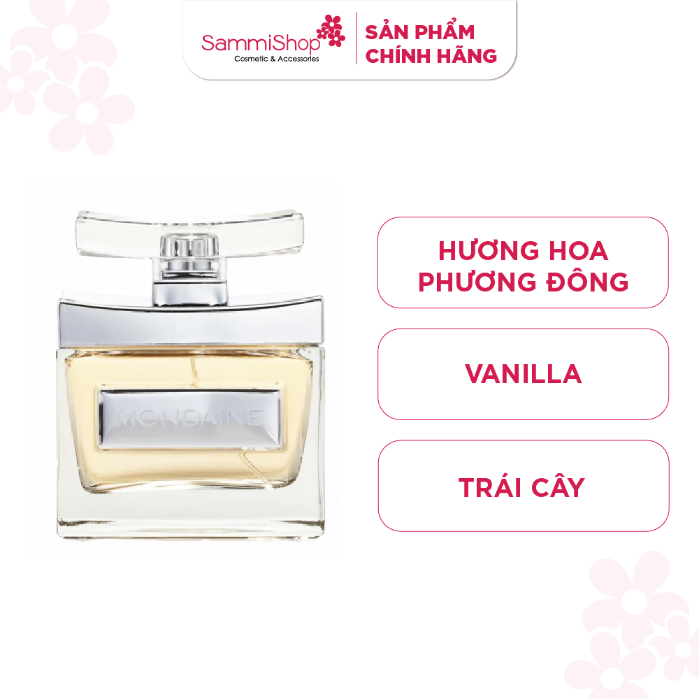 - Mondaine được ví như một bản nhạc hương hoàn chỉnh khi kết hợp khéo léo giữa các nốt mùi khác nhau: Non tơ – tình tứ, thanh thoát – tự tin; khi thì bí ẩn, khi thì hiện đại nhưng khi lại nóng bỏng đến say lòng.