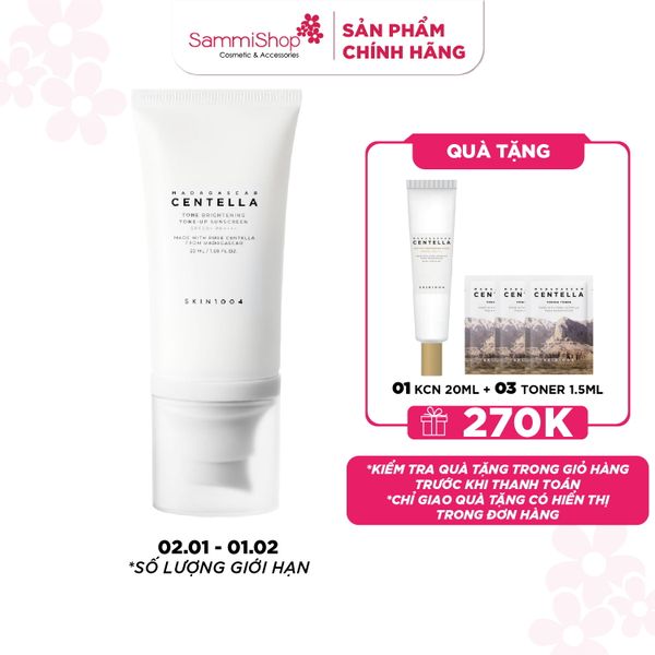 Skin1004 Kem chống nắng Madagascar Centella Tone Brightening Tone-up Suncreen SPF50+ PA++++ 50ml giúp bảo vệ da hiệu quả dưới tia UV và ánh sáng xanh. Đồng thời, làm sáng và làm đều màu da xỉn màu mang lại làn da tươi tắn và rạng rỡ.