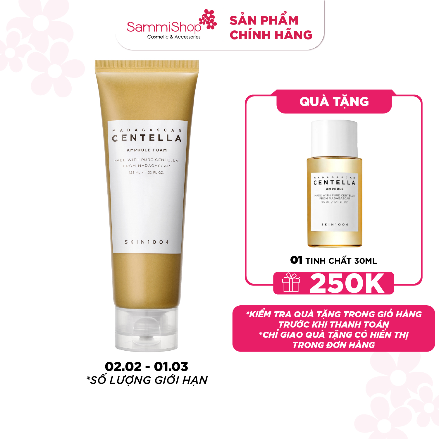 Sữa rửa mặt Skin1004 Madagascar Centella Ampoule Foam với lớp bọt mềm mịn giúp lấy sạch bụi bẩn, bã nhờn, dầu thừa từ sâu lỗ chân lông. Sữa rửa mặt giúp làm sạch da mà không làm da mất nước, lưu giữ được độ ẩm mịn, mềm mại trên da. Với độ pH chuẩn 5.5,bảo vệ lớp màng tế bào mỗi ngày với công thức an toàn, hỗ trợ điều trị mụn tốt hơn.