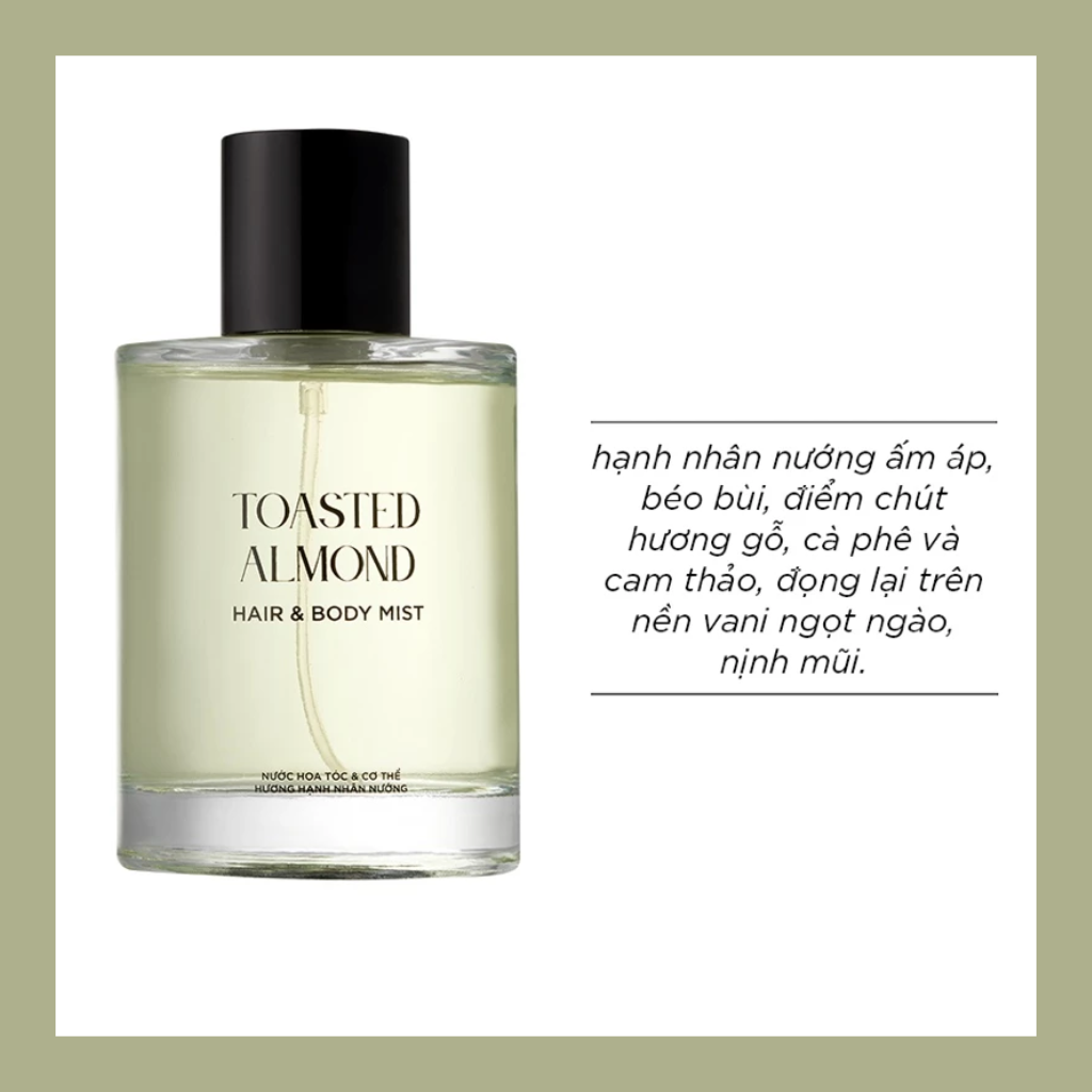 Skinlax Nước hoa tóc và cơ thể hương Hạnh Nhân Nướng Toasted Almond Hair & Body Mist 100ml với hương thơm ngọt ngào từ hạnh nhân nướng, giúp bạn lưu hương dài lâu khi sử dụng