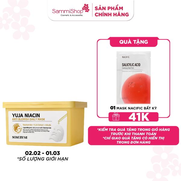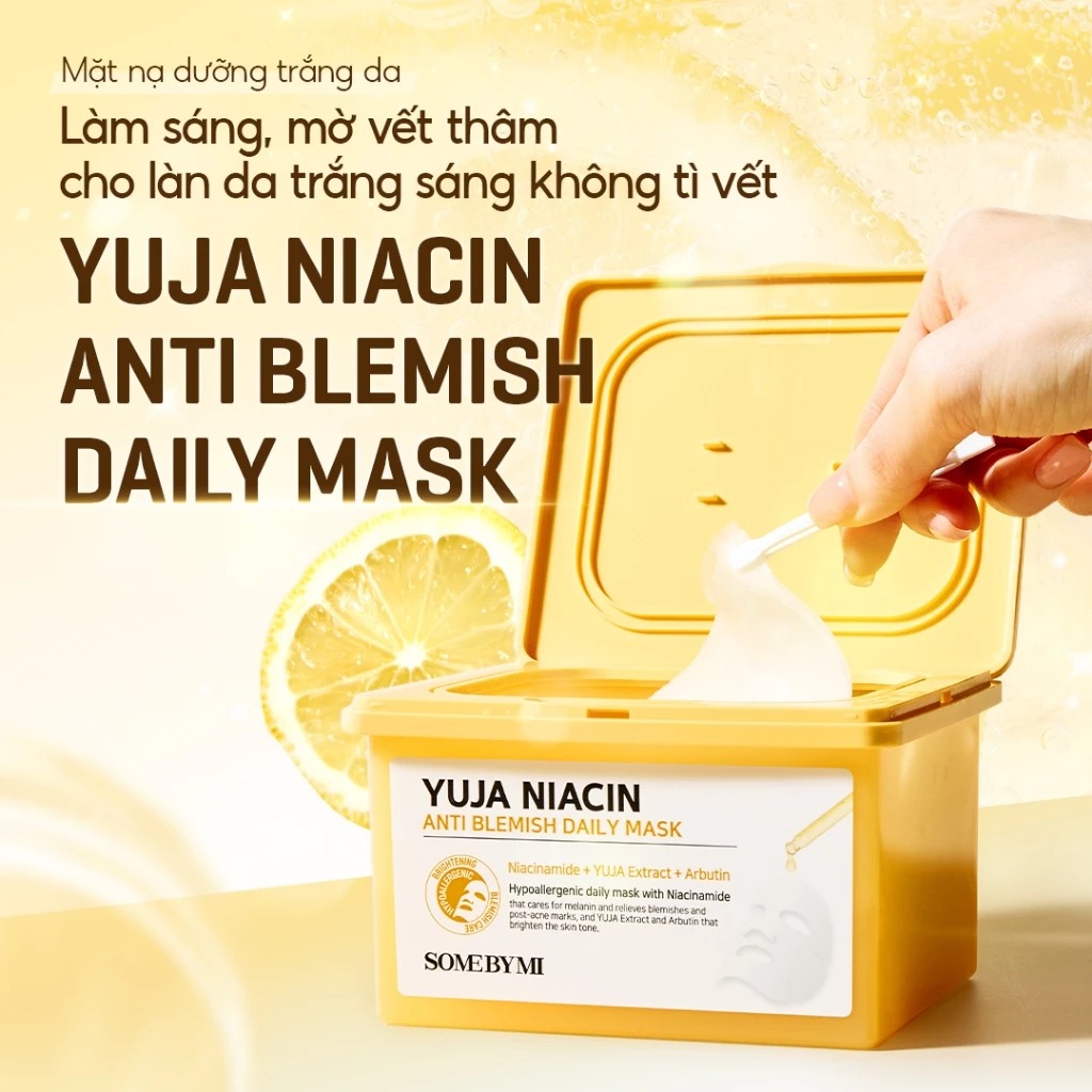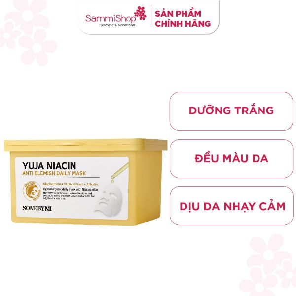 Some By Mi Hộp mặt nạ giấy Yuja Niacin Anti Blemish Daily Mask 370ml (hộp 30 miếng) giúp làm sáng, mờ vết thâm mang lại làn da trắng không tì vết