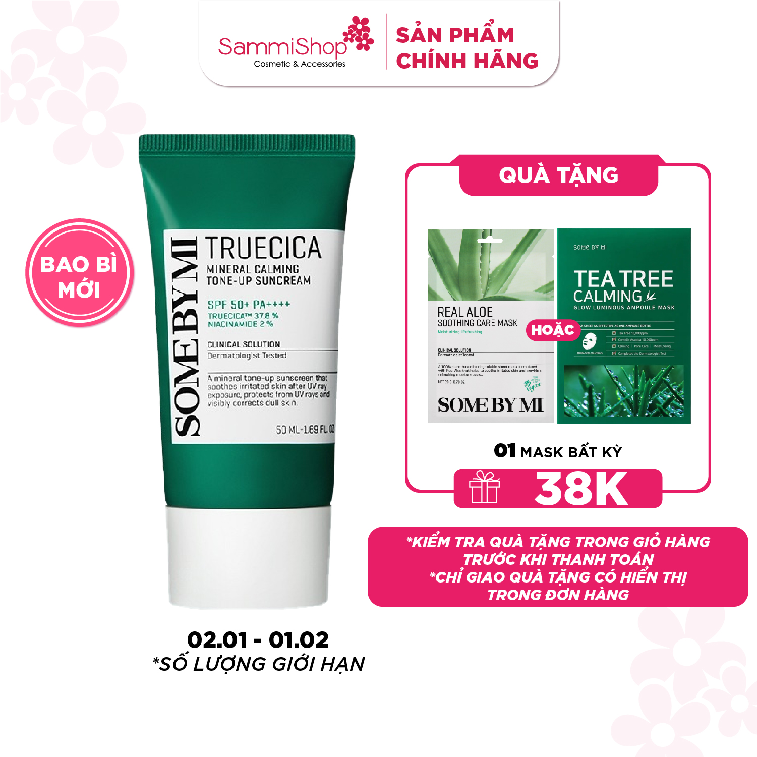 - Chứa thành phần đặc trưng của SOME BY MI Truecica ™ và Chiết xuất từ lá lô hội giúp làm dịu da.