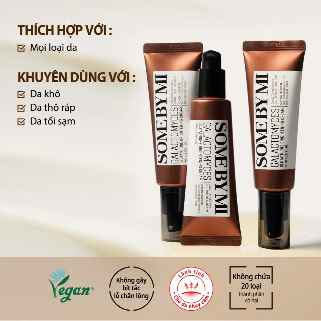 Some By Mi Kem Dưỡng Galactomyces Glutathione Brightening Cream 40ml với thành phần dưỡng trắng vượt trội, thích hợp sử dụng hằng ngày.