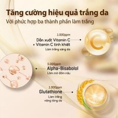 - Tăng cường hiệu quả trắng da với phức hợp 3 thành phần làm trắng