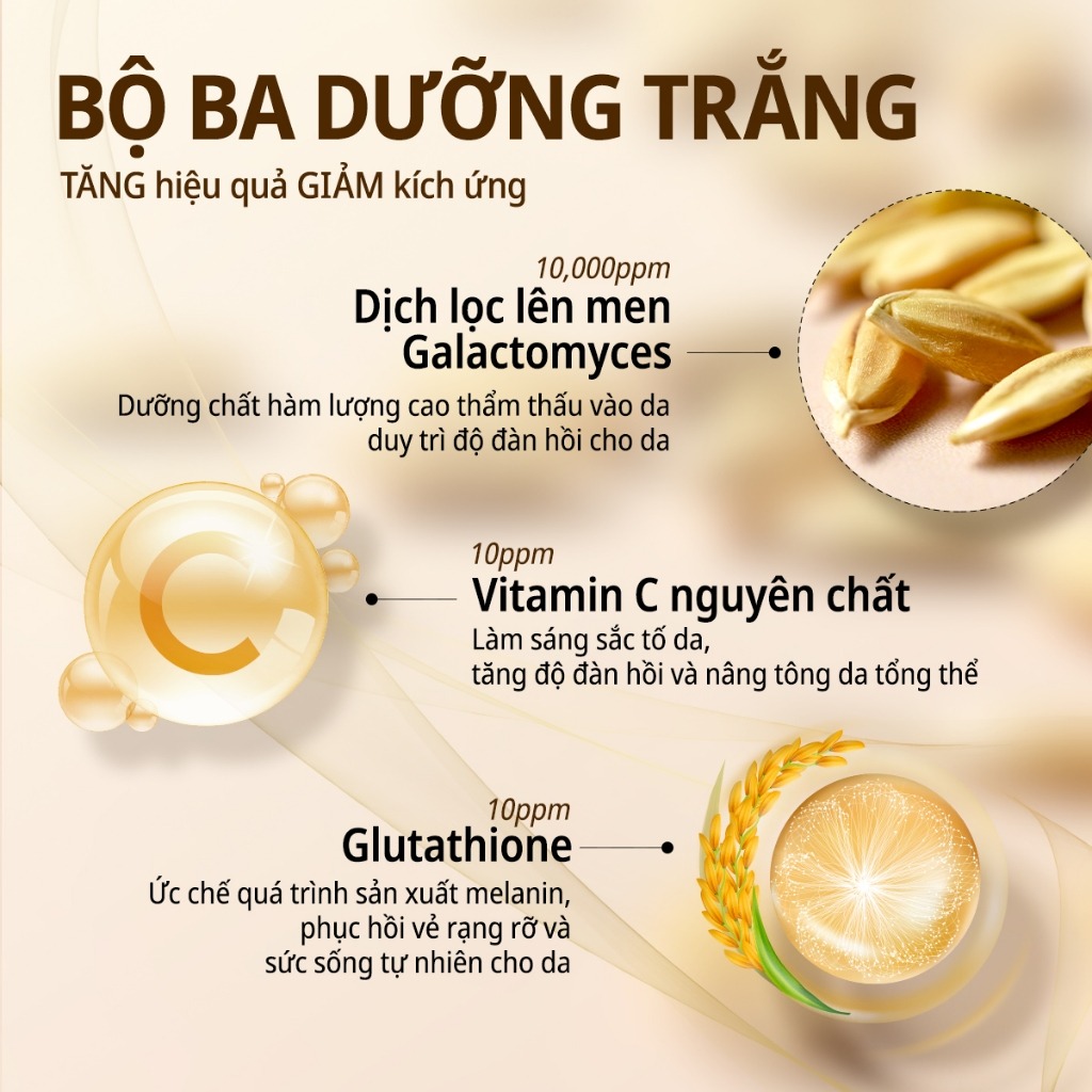 - Làm sáng sắc tố da, tăng độ đàn hồi và nâng tông da tổng thể