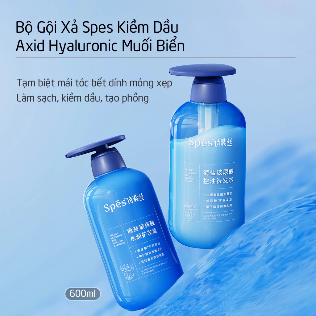 Spes Dầu gội kiểm soát dầu Sea Salt Hyaluronic Acid Oil Control Shampoo 600ml chiết xuất muối biển địa trung hải có khả năng làm sạch sâu cho mái tóc. Đem lại cho bạn 1 mái tóc bồng bềnh, mượt mà