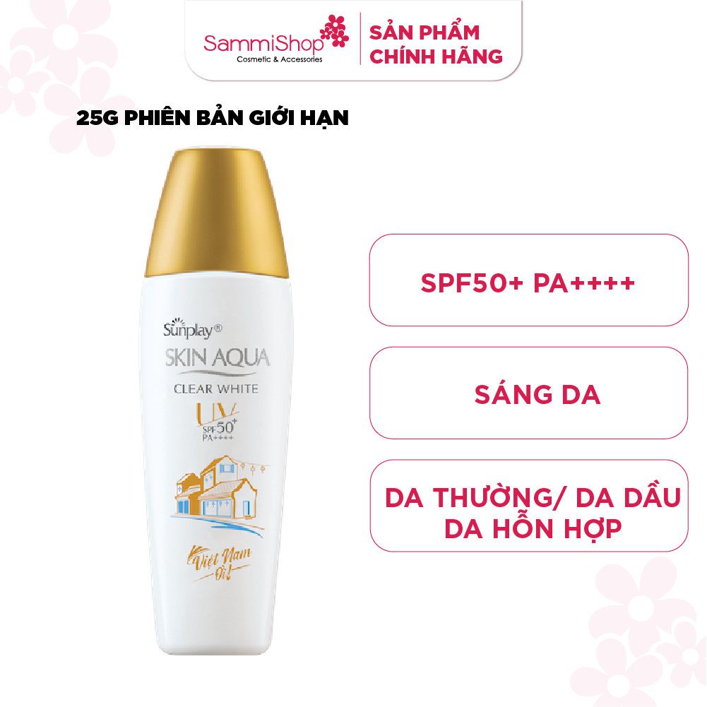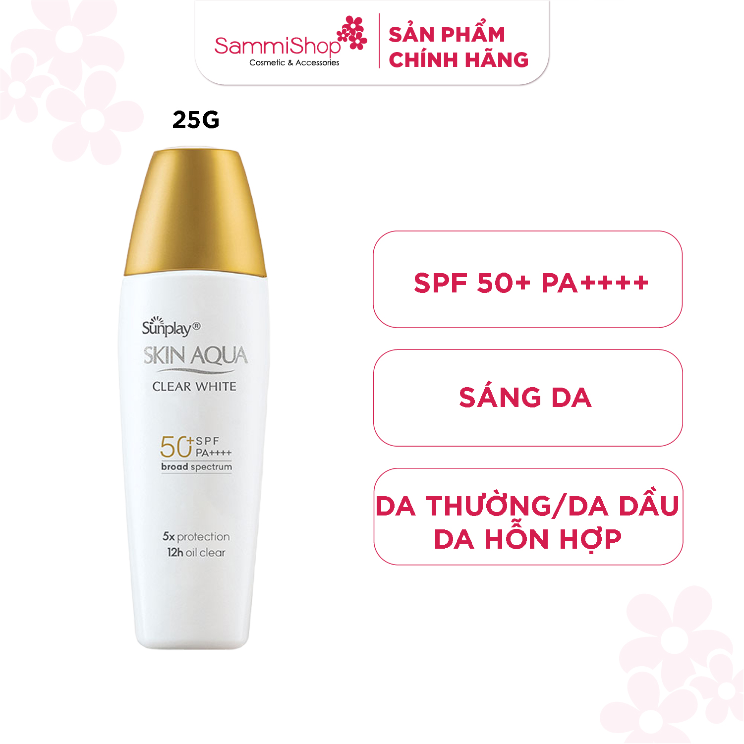 Sữa chống nắng Sunplay Skin Aqua Clear White SPF50+ PA++++ là sản phẩm chống nắng dành riêng cho da mặt giúp da trắng mịn. Với kết cấu dạng sữa cùng các hạt phấn siêu mịn, sản phẩm có thể dùng làm lớp lót trang điểm nhẹ tênh.
