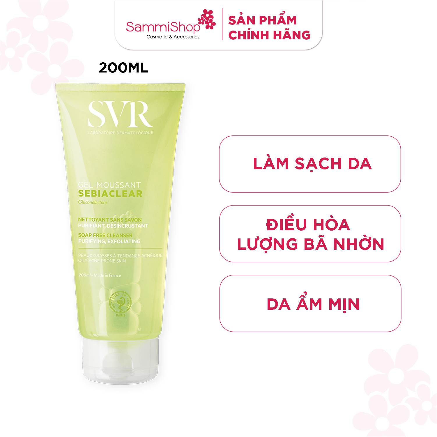 Gel Rửa Mặt SVR Sebiaclear Gel Moussant là một sản phẩm làm sạch không chứa xà phòng giúp làm sạch, nhẹ nhàng làm thông thoáng làn da. Khả năng tạo bọt mịn giúp loại trừ các chất bẩn và lượng bã nhờn dư thừa mà không làm khô da. Có thể rửa sạch dễ dàng, mang lại một làn da sạch, tươi mát và khô thoáng.
