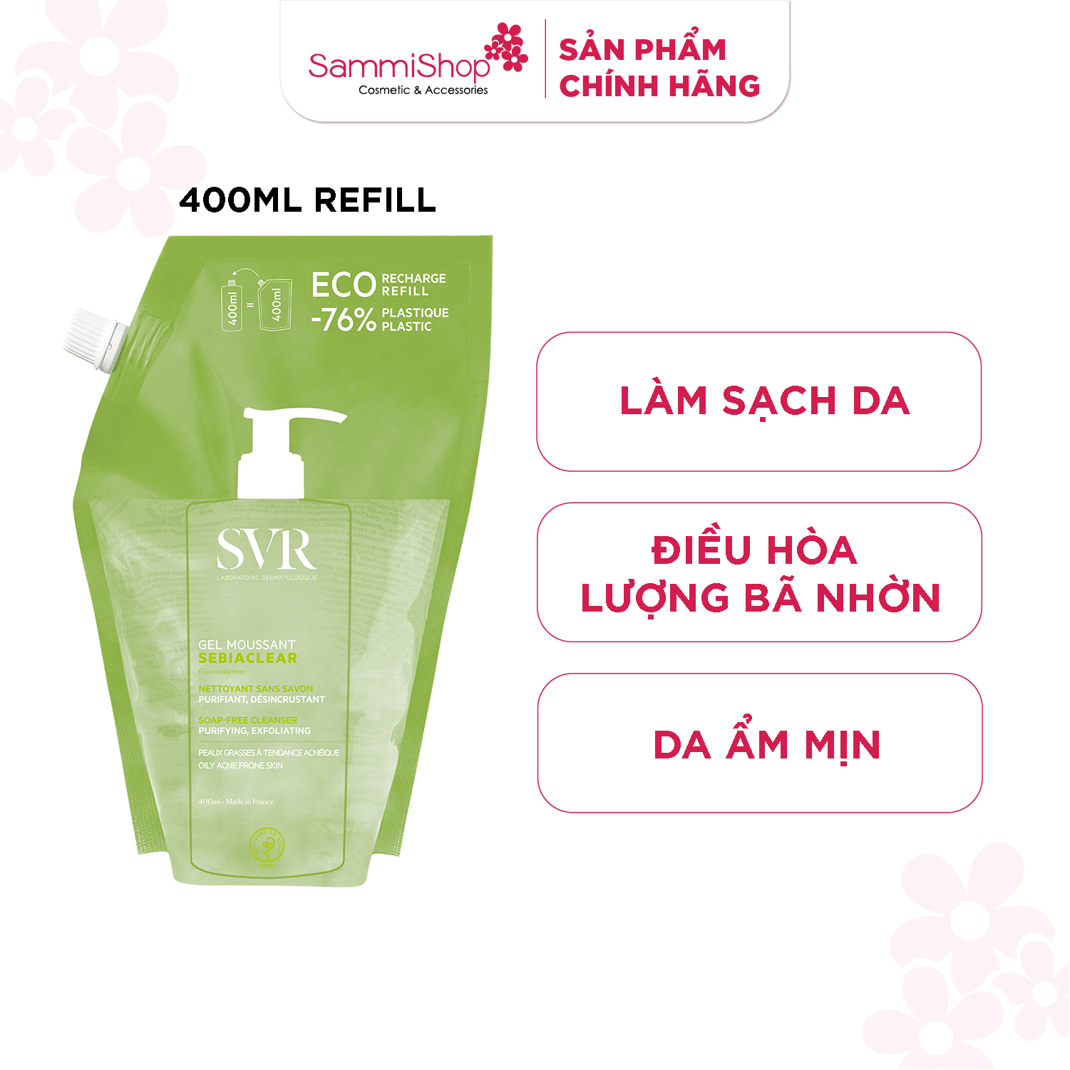 - Dung tích: 55ml; 200ml; 400ml; refill 400ml
