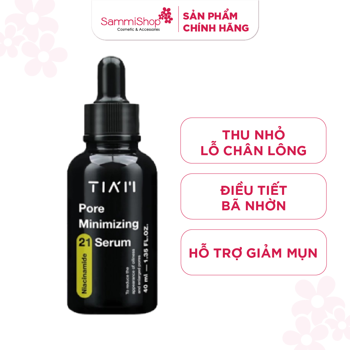Tia'm Serum Niacinamide Pore Mininmizing 21 với 4 công dụng vượt trội của Pore Minimizing giúp thu nhỏ lỗ chân lông, kiểm soát dầu thừa, dưỡng sáng da và giảm mụn.