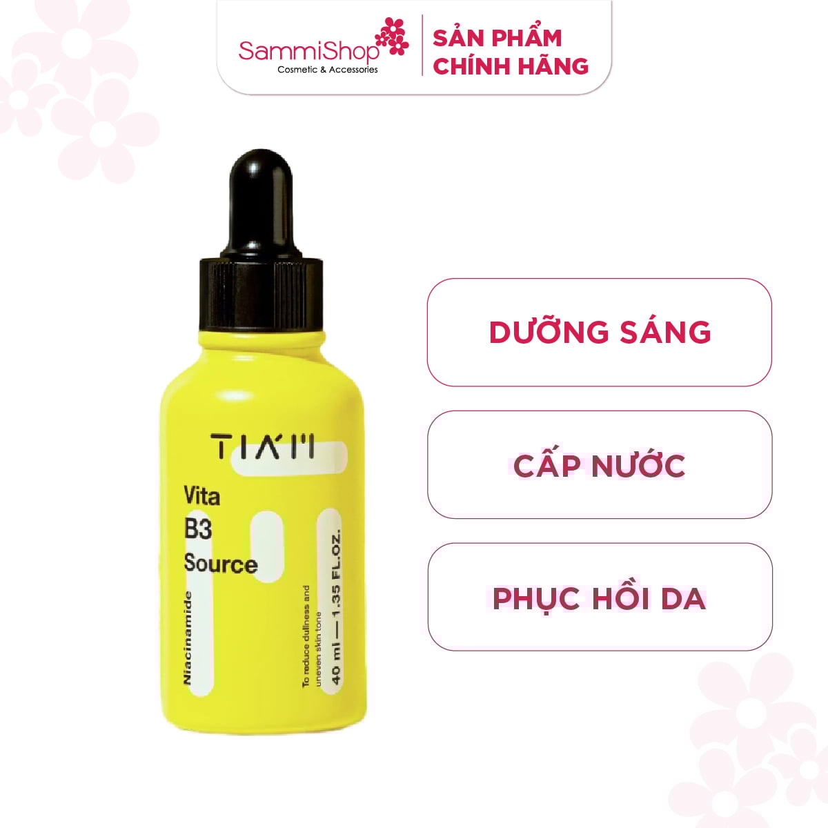Tia'm Serum Phục hồi da sáng khỏe sau mụn Vita B3 Source 40ml không những mang lại hiệu quả dưỡng trắng, phục hồi cao mà lại vô cùng an toàn, lành tính dùng được cho cả da dầu mụn nhạy cảm.