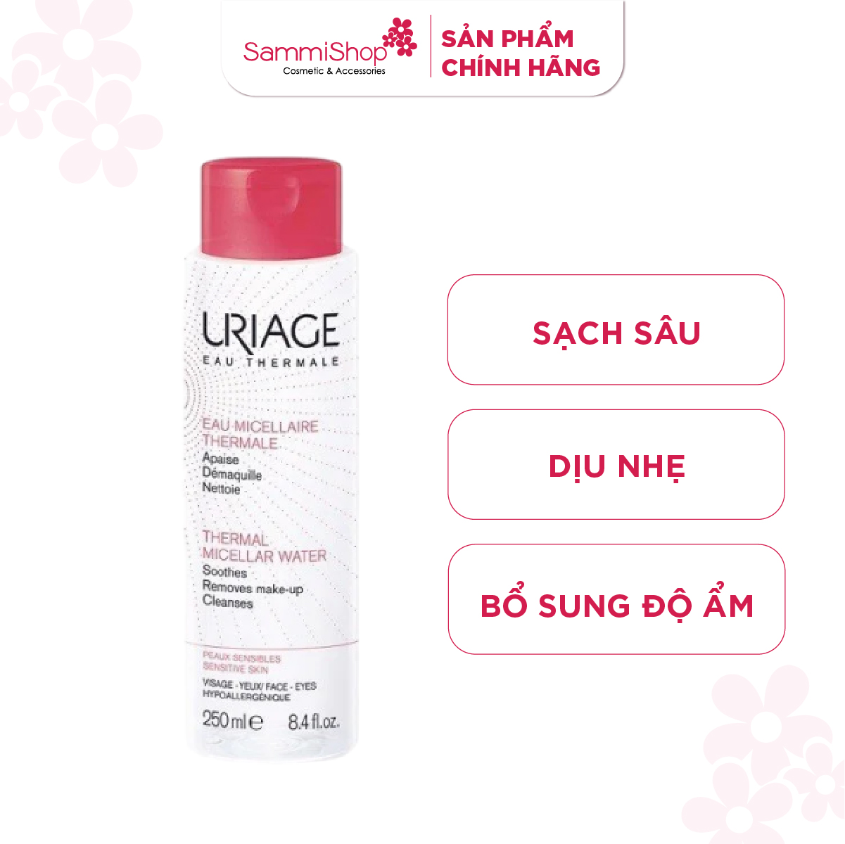 Uriage Nước tẩy trang Eau Micellaire Thermale Peaux Sensibles 250ml nhờ có các tính năng dưỡng ẩm và làm dịu độc đáo của nước khoáng Uriage cùng với công nghệ hạt Micelle thế hệ mới giúp bẫy trọn bụi bẩn, tạp chất, dầu thừa và các lớp mỹ phẩm chống nắng, trang điểm giúp làm sạch da nhẹ nhàng, giảm cảm giác khô căng khó chịu mà vẫn an toàn và hiệu quả cho da nhạy cảm.