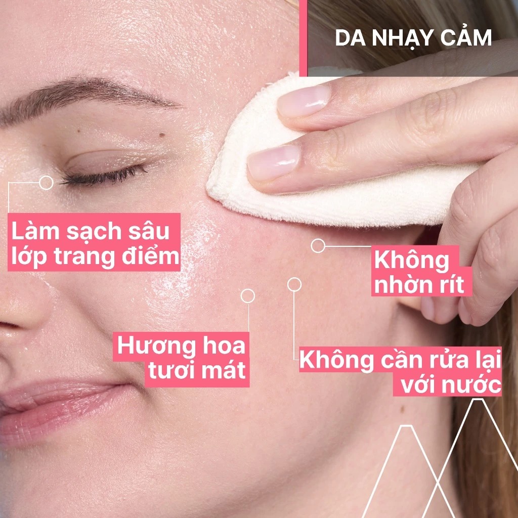 - Làm sạch và tẩy trang: nước tẩy trang dưỡng khoáng với các chất hoạt động bề mặt không ion giúp nhẹ nhàng loại bỏ tạp chất, dầu thừa, lớp chống nắng, trang điểm trên mặt, mắt và môi mà không ảnh hưởng đến sự cân bằng tự nhiên của da.