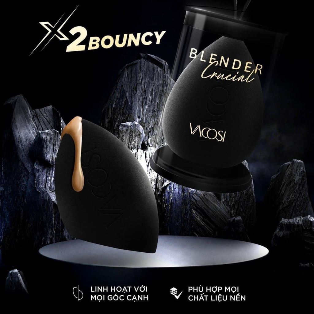 Cải tiến từ chất liệu Latex-free theo Công nghệ BOUNCY x2, Blender VACOSI đạt độ nở mềm gấp 2.3 lần chỉ trong 5s ngậm nước: giúp bông hoạt động hoàn hảo với mọi chất liệu nền (kem, lỏng, phấn), ít hao phí kem nền và hỗ trợ đắc lực trong hiệu ứng “phủ sương” cho lớp nền chắc – trong – mượt.