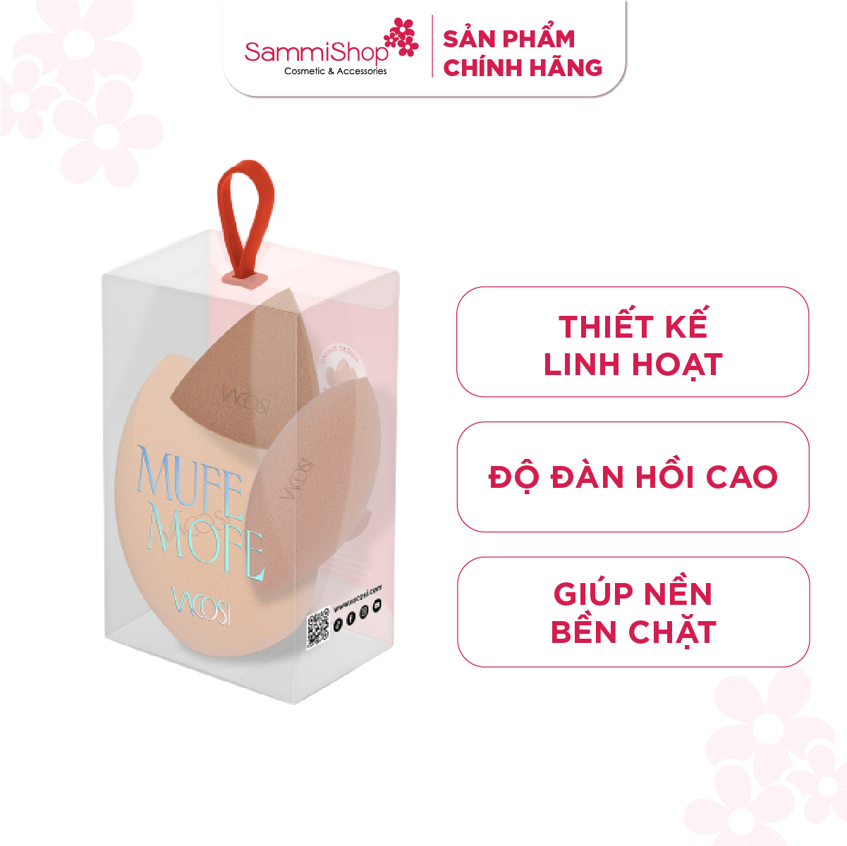 - 3 mặt bên linh hoạt cho thay đổi chất liệu: kem che khuyết điểm, kem triệt sắc, phấn phủ, baking kiềm dầu.