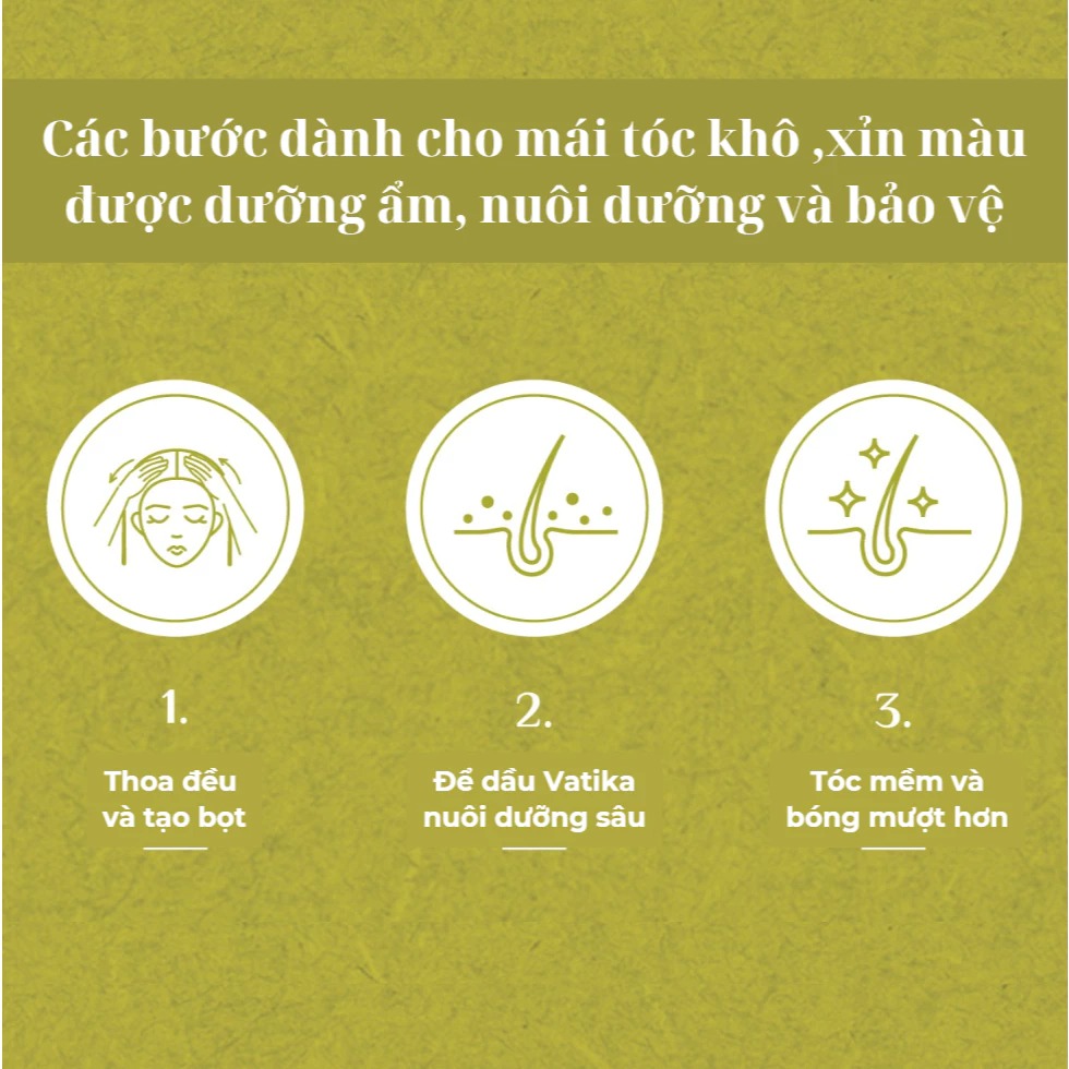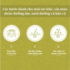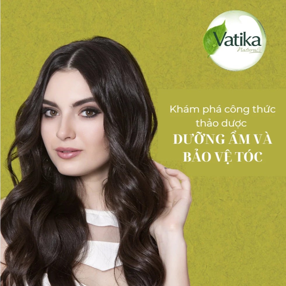 - Tinh dầu Vatika: Công thức thảo dược chứa tinh dầu VATIKA giúp sản phẩm Vatika nuôi dưỡng và bảo vệ dưỡng tóc sâu từ gốc đến ngọn, làm mềm và tăng cường độ bóng cho tóc.
