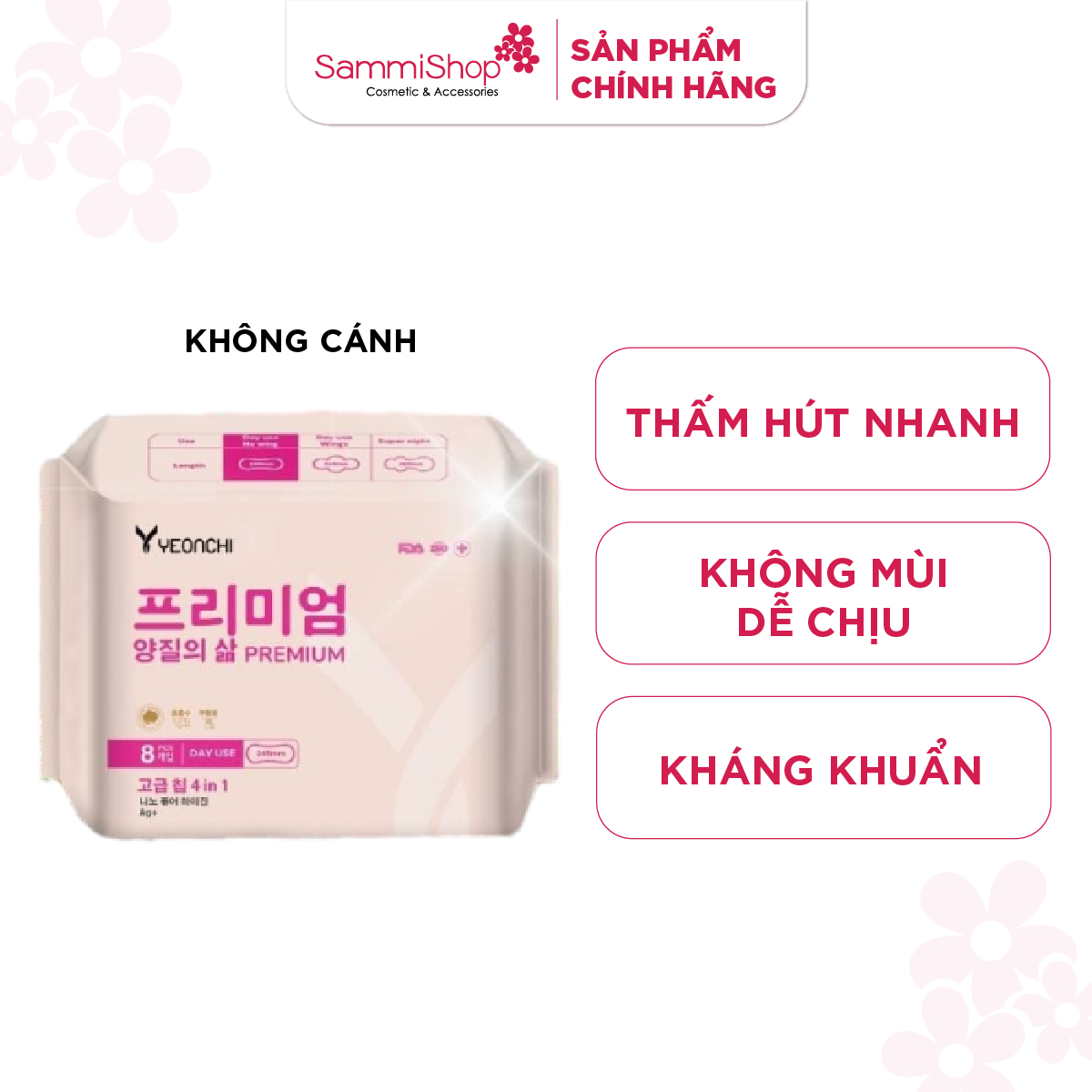 Yeonchi Băng vệ sinh ban ngày Premium 8 miếng có cánh với lớp bề mặt từ cotton hữu cơ, thân thiện với làn da, được sản xuất với công nghệ bảo vệ toàn diện giúp tuyệt đối an toàn, hỗ trợ ngăn ngừa bệnh phụ khoa, tăng cường lưu thông máu, giảm đau bụng trong kỳ kinh nguyệt.
